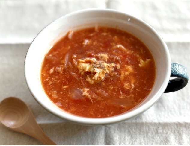 ヒハツを使った温活レシピの中でも、「ヒハツ入りトマ玉オニオンスープ」は、温かいスープでたんぱく質とビタミンをしっかり摂れるおすすめメニューです。